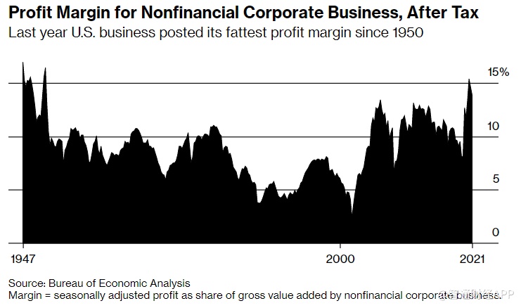 智通财经APP获悉 ,美国商务部周三公布的数据显示,受家庭需求强劲的推动,去年美国企业利润飙升了35%。疫情期间,政府为家庭需求提供了现金转移支付。在去年的四个季度中,整体利润率都保持在13%以上。