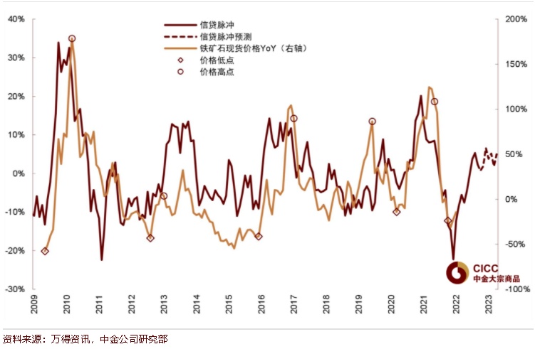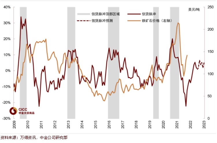 图表: 信贷脉冲与铁矿石价格的同比增速(信贷脉冲右移8个月)