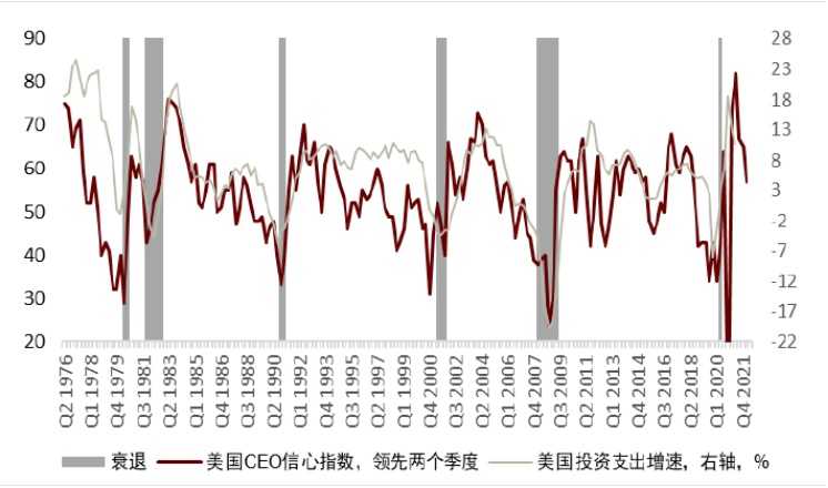 就投资意愿而言,最近美国CEO信心指数下降值得关注。由于通胀因素、劳工短缺和供应链问题的影响,美国CEO信心指数从去年Q3开始接连下滑,并且最新数据更新在2月初期,尚未反映俄乌冲突可能带来的影响与变化。这个指标通常领先美国投资支出增速大概2个季度。接下来的走势取决于俄乌局势是否能有所缓解(已初见端倪)以及通胀能否得到有效的控制(尚未明朗)。但总体而言,CEO信心指数仍然处于正的区间,这代表美国的投资支出能持续实现正增长的机率仍然较大(图表2)。