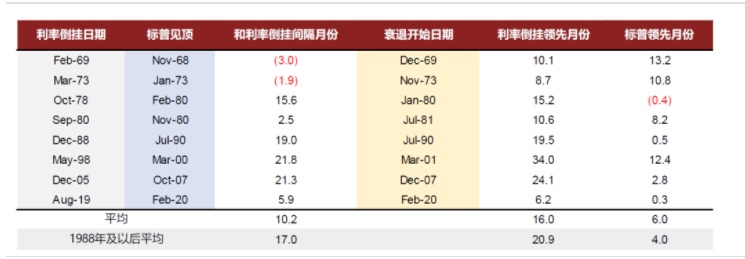 就权益市场而言,利率倒挂本身不构成太大威胁。历史上,标普在利率倒挂期间仍然能有所表现(图表8),平均在利率倒挂大概10个月后见顶,仅领先于经济衰退6个月左右(相较之下,利率倒挂通常领先衰退16个月左右)。