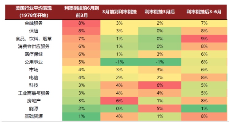 图表11:利率倒挂期间,周期行业跑赢,倒挂后3-6月行业表现更加平衡