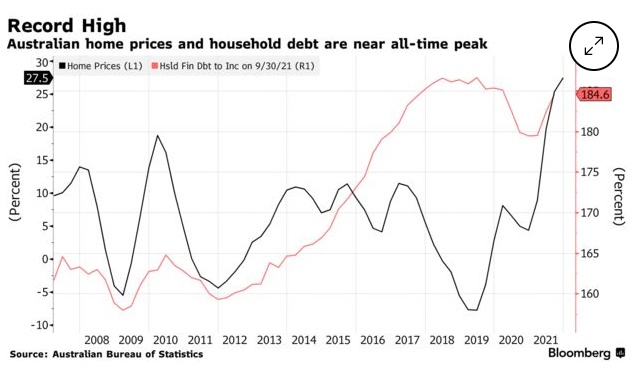 澳大利亚统计局在周四公布的一份报告中表示,在2021年的第四季度中,澳大利亚家庭财富增长了4.5%,达到14.7万亿澳元(折合11万亿美元)。房屋升值为该季度的家庭财富增长贡献了3.5个百分点。同时,贷款需求也达到了创纪录的544亿澳元。