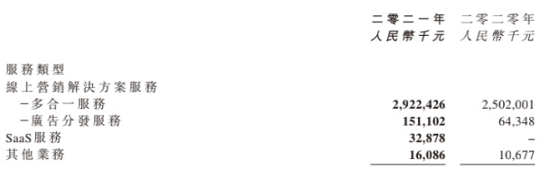 首先,就收入构成来看,公司线上营销业务保持稳健,期内实现收入30.7亿元,同比增加19.8%;同期,新业务SaaS服务开始贡献收入。报告年度内,SaaS服务实现收入3288万元,这亦标志着公司云服务业务正式进入商业化落地的新阶段。