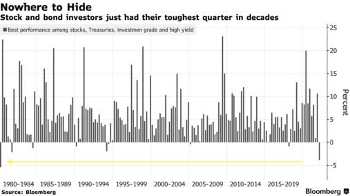 智通财经APP观察到,战争、通货膨胀和全球疾病的持续影响,使2022年第一季度成为股市和债市投资者历史上处境最艰难的一个季度。