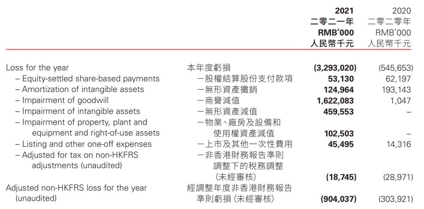 但细看利润表不难发现,净亏损的扩大主要是因为中国有赞进行了商誉、无形资产、物业、厂房和设备等的减值和摊销以及对非经常性费用的扣除。这虽然会导致本期的利润表现相对弱势,但历史的财务“包袱”也随之解除,有赞开始轻装上阵。