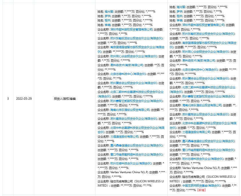 智通财经APP获悉,企查查APP显示,3月29日,比科奇微电子(杭州)有限公司发生工商变更,新增股东中国互联网投资基金(有限合伙),后者由中国移动通信集团有限公司、中国联合网络通信集团有限公司、中国电信集团有限公司等共同持股。