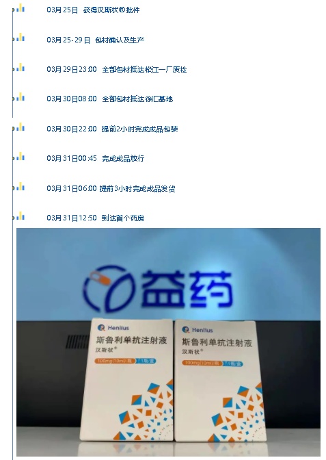 而此前,3月25日复宏汉霖首款创新药产品PD-1抑制剂H药 - 汉斯状®正式获批,在拿到批件后的第4个工作日,首批汉斯状®即完成发货,奔赴近30个省100多座城市,即将在全国投入临床使用,为更多MSI-H实体瘤患者带去治疗新希望。继汉利康®、汉曲优®、汉达远®和汉贝泰®成功上市后,汉斯状®是复宏汉霖走向市场的又一款重磅产品,为患者提供创新免疫治疗。