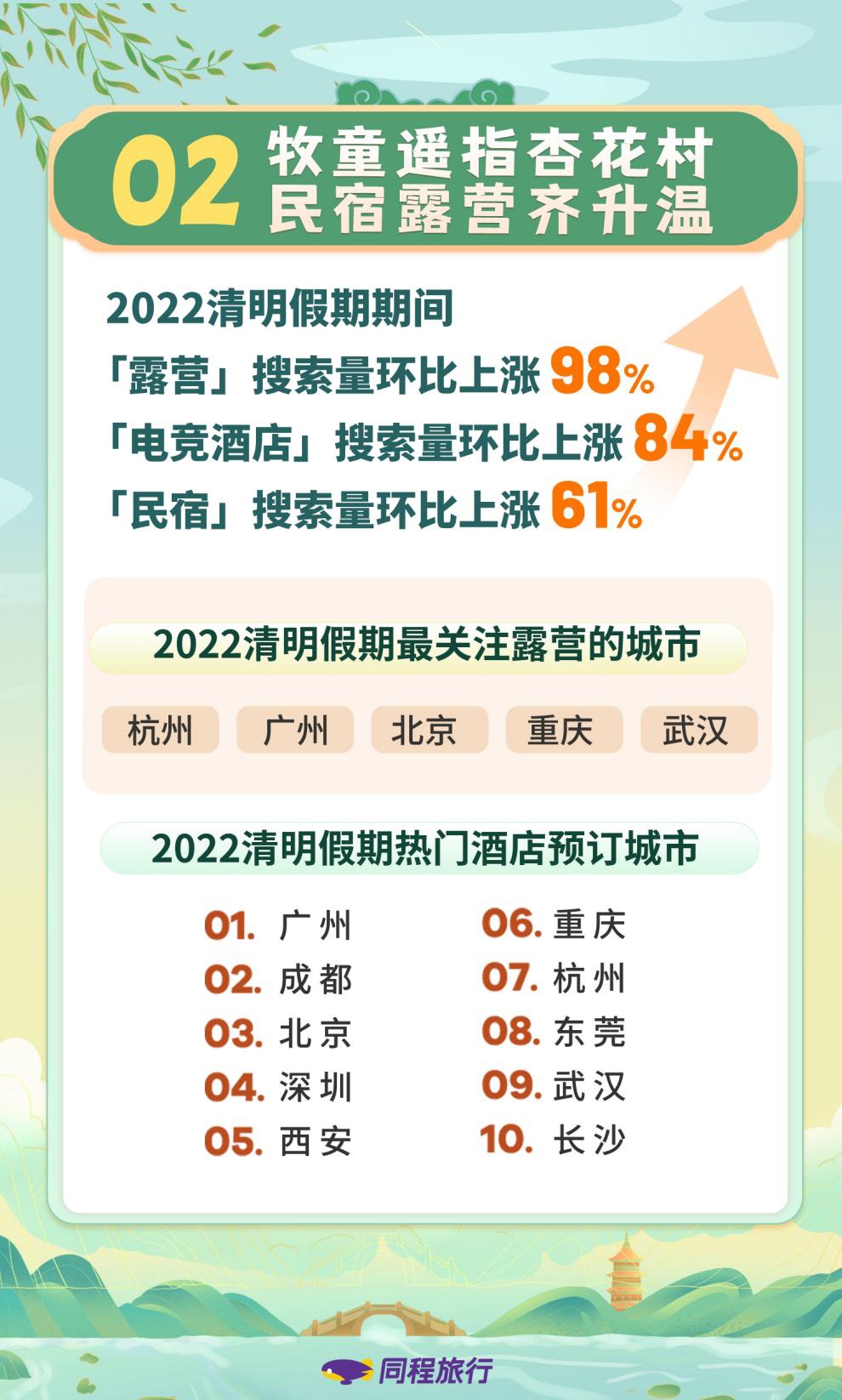 2022年春天的第一个小长假即将结束,出门赏花和返乡祭祖的人们也纷纷踏上归途。智通财经APP了解到,4月5日,同程旅行(00780)发布《2022清明假期旅行消费数据报告》,对清明假期全国旅行消费市场进行了分析和盘点。