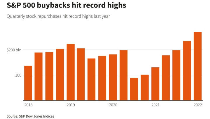 随着企业即将迎来新一轮财报季,尽管部分投资者担忧通胀、潜在经济衰退和股价停滞的威胁越来越大,美国企业的股票回购规模仍创下了历史新高。