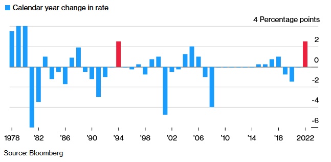 大宗商品价格的飞涨引发了市场对全球通胀压力的担忧。今年以来,美联储愈发鹰派的立场令投资者预期货币政策将更激进地收紧,进而导致全球债券市场暴跌。