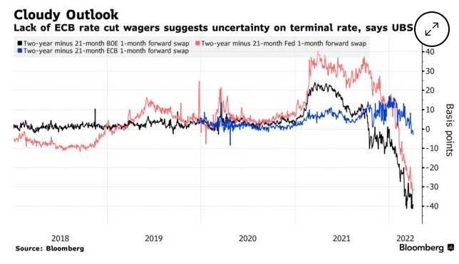 这种反差引出了一个问题--在欧洲央行开始放宽利率政策前,欧洲的利率能达到多高?“我们仍然无法预测欧洲央行会将最终利率推向何方,”瑞银集团的利率策略师Rohan Khanna表示。