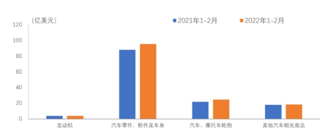 智通财经APP获悉,据中国汽车工业协会整理的全国海关汽车商品进出口数据显示,2022年1-2月,我国汽车零部件出口金额142.2亿美元,同比增长8.1%,占汽车商品出口总额的59.2%。在汽车零部件主要出口品种中,与上年同期相比,发动机出口金额略有下降,其他三大类汽车零部件品种均呈增长。