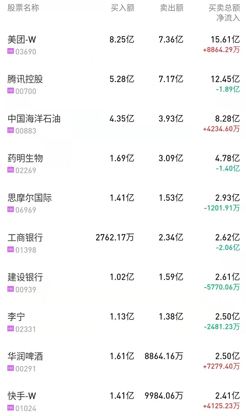 美团-W(03690)获净买入2.72亿港元。消息面上,大和发布研报称,从监管环境来看,互联网行业尚未完全走出困境。该行认为,本地服务如社区团购、网上约车的利润率提升最大,其次是云、长视频及广告、国内游戏运营和电子商务。该行认为,美团优选的亏损将从2021年的265亿元收窄至2022年的166亿元,因此认为美团利润率将在2022年实现最大的改善。值得一提的是,同属科网股的腾讯(00700)再遭净卖出5.24亿港元。