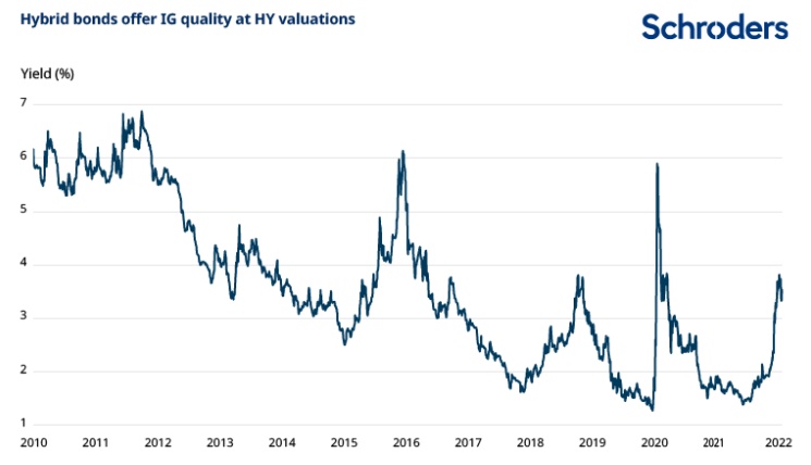 由于混合债券在资本结构中处于“次级”地位,因此与公司发行的高级债券相比,混合债券的信用评级较低。因此,在发行者基本面相同的基础上,混合债券的评级较低,因此收益率和利差较高。