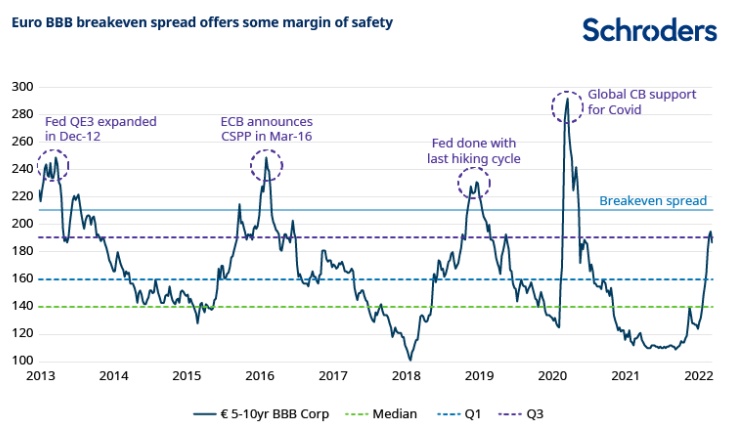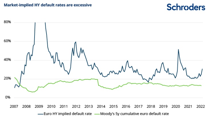 施罗德认为,信贷市场的估值反映了很多负面因素——但也许太多了。收益率和利差已显著上升至吸引人的水平。而且,企业基本面正处于健康水平,违约率应该是良性的,除非欧洲陷入深度衰退,但施罗德认为这种情况不太可能发生。