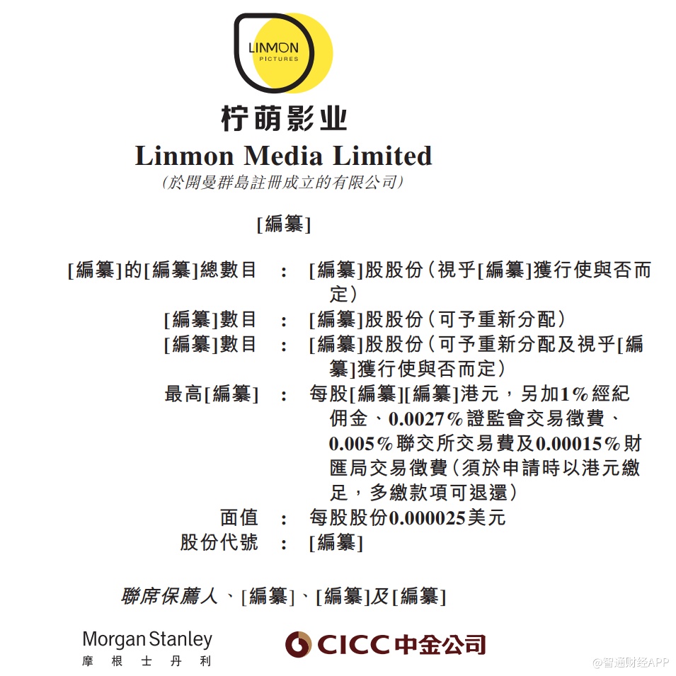 智通财经APP获悉,据港交所4月8日,柠萌影业向港交所主板提交了上市申请,摩根士丹利及中金公司为联席保荐人。