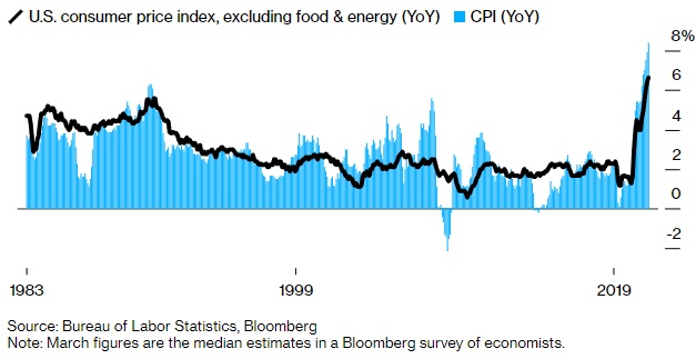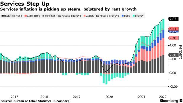 彭博对经济学家的调查显示,预估中值是8.4%,为1982年初以来的最大同比涨幅;环比涨幅将达到1.2%,为2005年以来最高水平。这将反映出俄乌冲突后能源成本的攀升。