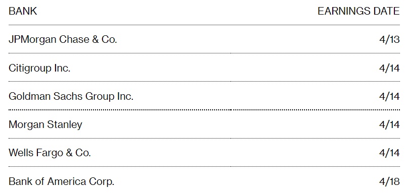 各家大型银行公布最新季度业绩的日期