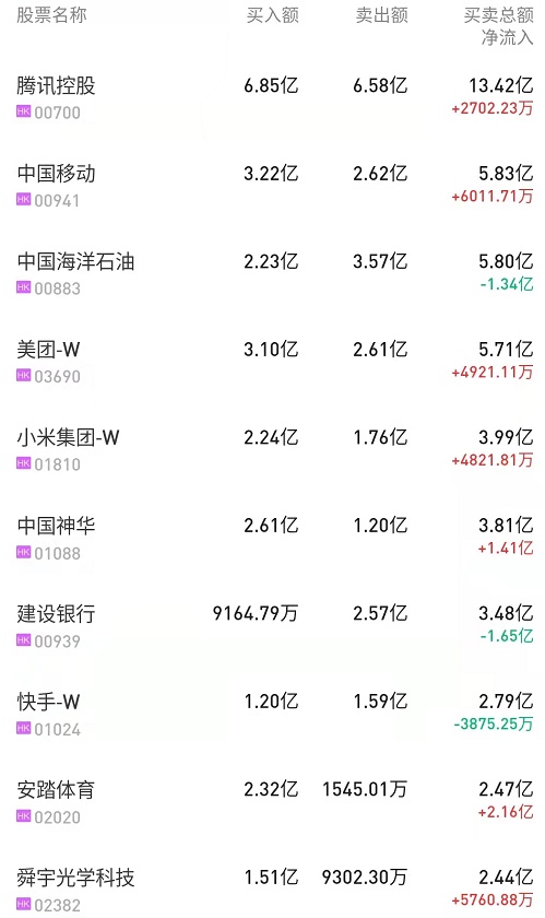 此外,中国神华(01088)、中国移动(00941)、小米集团-W(01810)分别获净买入1.41亿、9356万、4821万港元。而华润啤酒(00291)、腾讯(00700)、建设银行(00939)分别遭净卖出2.3亿、2.22亿、1.65亿港元。
