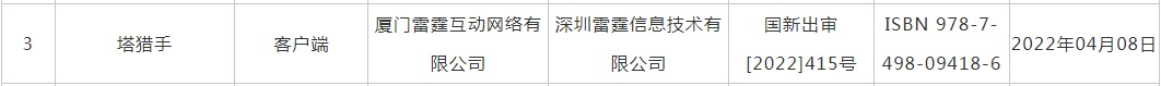 智通财经APP获悉,4月11日,国家新闻出版署发布了新一批过审国产游戏名单,国产游戏版号时隔8个月迎来重启核发。本轮核发共45款游戏,涉及获批游戏包括三七互娱(002555.SZ)的《梦想大航海》、心动公司(02400)的《派对之星》、创梦天地(01119)的《小心火烛》、吉比特(603444.SH)子公司雷霆网络的《塔猎手》等。此外,相关板块公司青瓷游戏(06633)和百奥家庭互动(02100)等也会受行业整体情绪提振影响,股价获上涨空间。