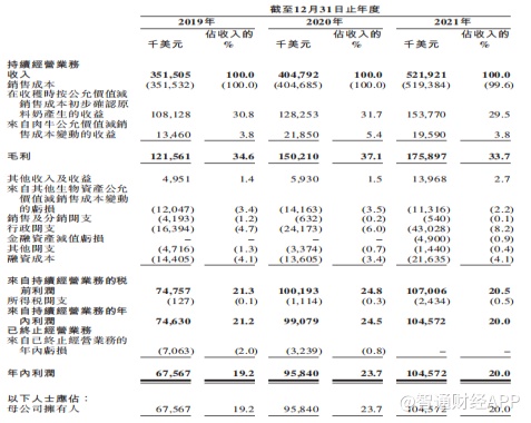 2021年,公司营收从4.05亿美元同比增加28.9%至5.22亿美元,毛利润从1.5亿美元增加17.1%至1.76亿美元,净利润从9910万美元同比增加5.5%至10460万美元;在2019年至2021年期间,公司营收年复合增长率为21.9%,净利润年复合增长率为18.4%。