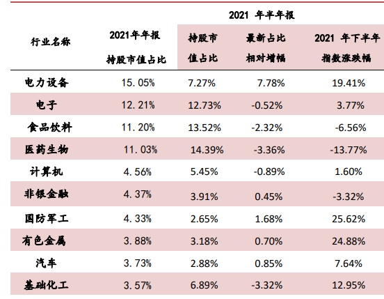 (2021年末基金全持仓行业分布前十)