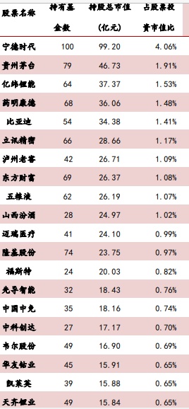 持仓市值TOP20个股