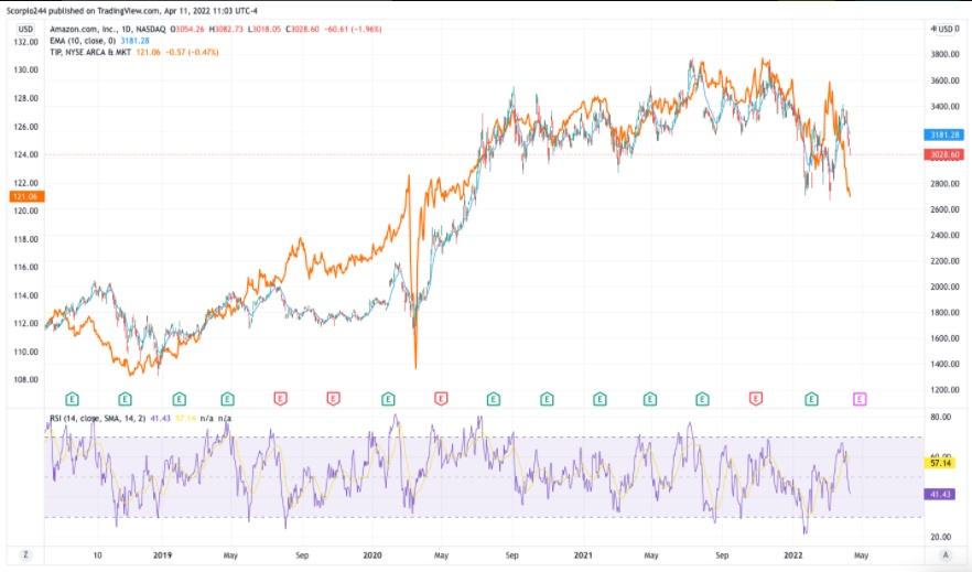 由于美联储不断释放加息、缩表信号,这导致投资者对风险资产进行重新定价,亚马逊(AMZN.US)股价走势也因此十分低迷,截至周一收盘,该股收跌2.16%,报3022.44美元。亚马逊未来股价是否将持续走低?通过分析实际收益率或许能找到答案。