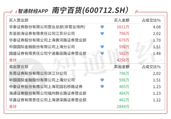 南宁百货(600712.SH):多主力现身龙虎榜,机构席位买入1611万元,买五是知名游资的席位买入 582万元,当日净买入1414万元,该股今日强势涨停,预计压力位在前期高点5.48元附近。