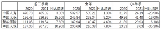 图:上市险企2021年全年及Q4单季净利润,单位亿元