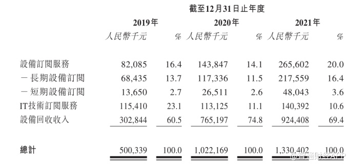 此外,当前收入贡献占比最大的设备回收服务主要为通过企业用户IT设备回收,翻新后用于设备订阅服务,当中也有部分淘汰设备于第三方平台或公司自由平台出售。
