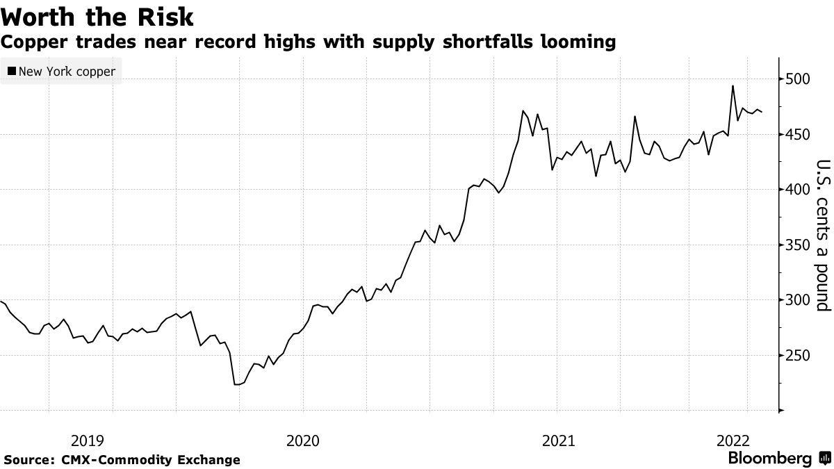 随着供应短缺迫在眉睫,铜价在历史最高点附近徘徊