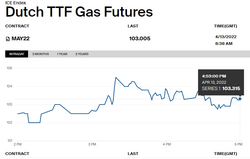 周三,欧洲天然气价格持稳,截至发稿,欧洲天然气价格风向标——TTF基准价格微涨0.79%,达到103.01欧元/兆瓦时。