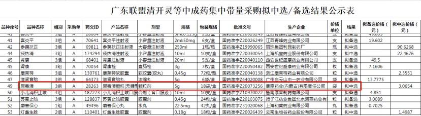 其中,康臣药业(01681)龙头产品尿毒清颗粒成为此次集采的中选药品,拟中选价为3.0654元/袋,比最高有效申报价3.5644元,下降14.0%。