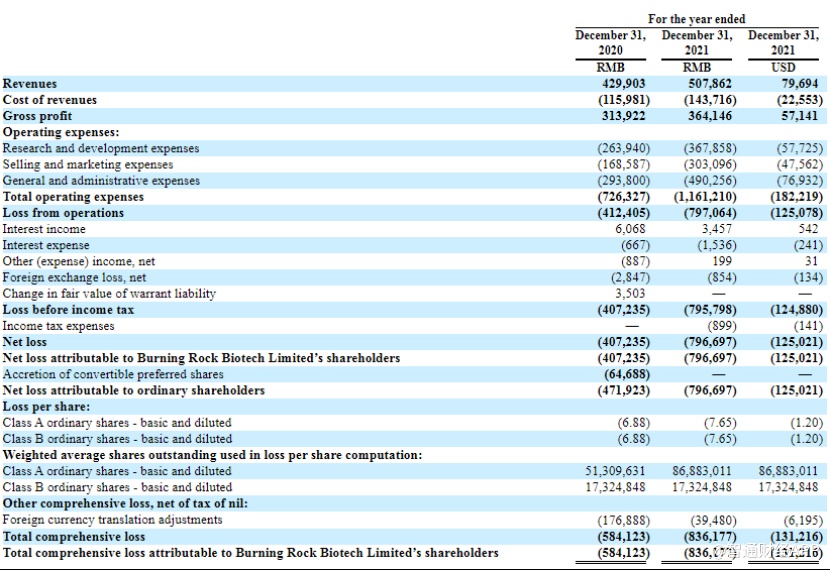 可见,燃石医学正在用更高的费用率换取营收规模的增长,这也是导致公司2021年最终亏损大幅扩大的关键原因。