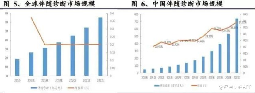 众所周知,国内伴随诊断市场潜力较大。据MarketsandMarkets数据,2016年全球伴随诊断市场规模约19亿美元左右,到2018年预计31亿美元,2016年至2022年的年复合增长率将达到22.78%。目前中国市场规模约3亿美元。过去7年,中国市场的CAGR超30%,且有加速趋势。