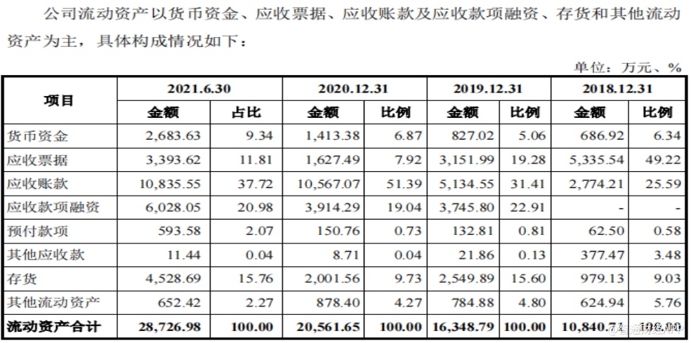 招股书显示,2021年上半年,信德新材应收账款和应收票据金额达到1.42亿元,占流动资产比重达到49.53%。