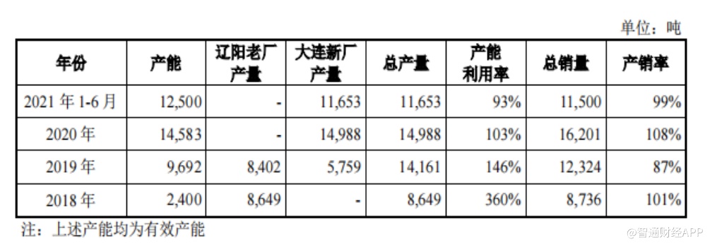 招股书显示,信德新材的产能长期出来高负荷运行状态。2021年上半年,公司产能为1.25万吨,总产量为约1.17万吨,产能利用率为93%,产销率达到99%。