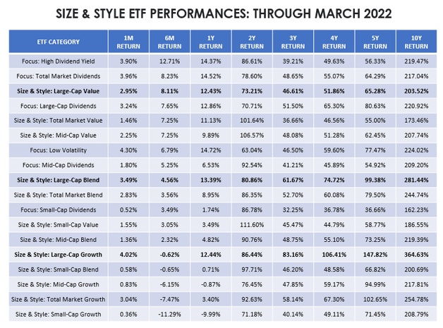 Alphabet是另一只优秀的长期股票,其23.54倍的预期市盈率相对较低,表明它不像同行那样容易受到增长-价值循环的影响。考虑到最近的趋势,这是一个关键的考虑因素。月度股息ETF报告表显示了在过去六个月里,大盘股成长型ETF的回报率中值大幅落后于大盘股价值型ETF。Alphabet是一只增长强劲、价格合理的股票,远期PEG为1.23。对于那些还不愿放弃增长的人来说,增持这类股票可能是明智的。