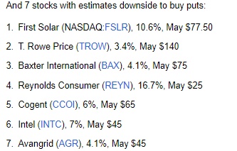 同时,高盛预计7只股票将出现下跌,适合买入看跌期权(PUT OPTION):
