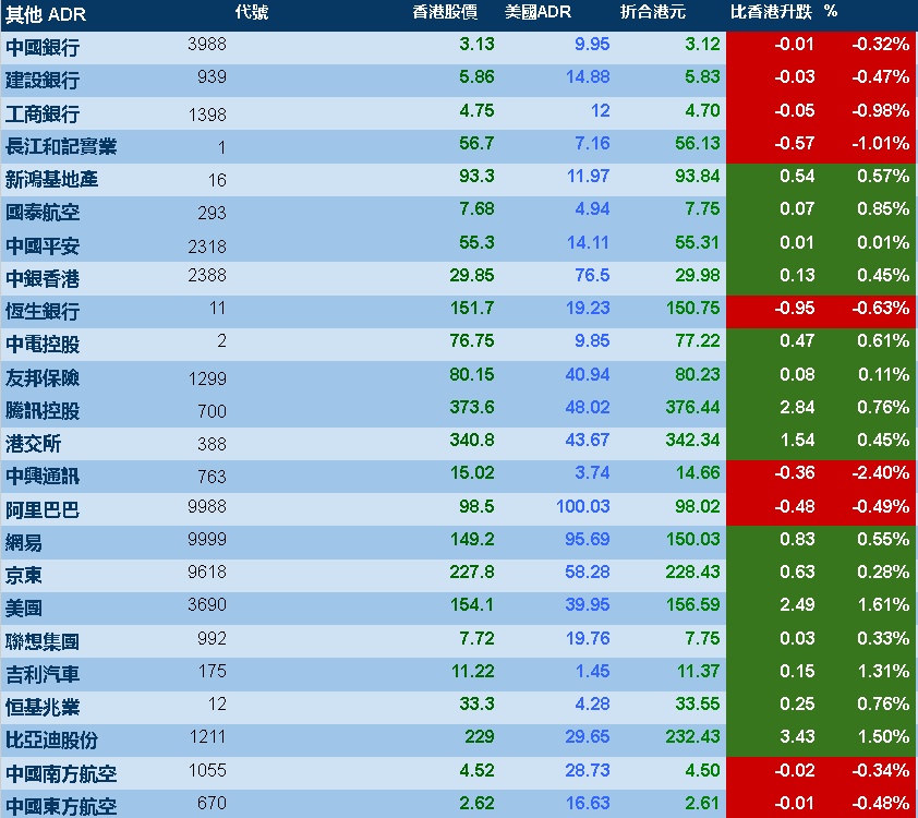 智通财经APP获悉,周三美股三大指数悉数上涨,港股ADR指数上涨,按比例计算,收报21398点,较香港收市涨23.99点或0.11%。