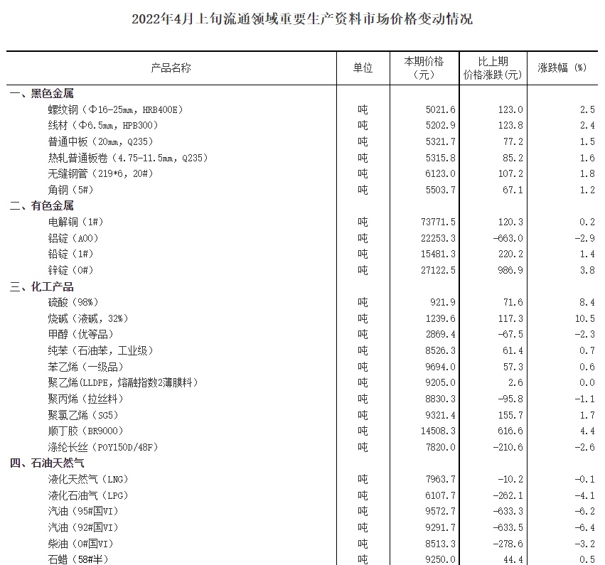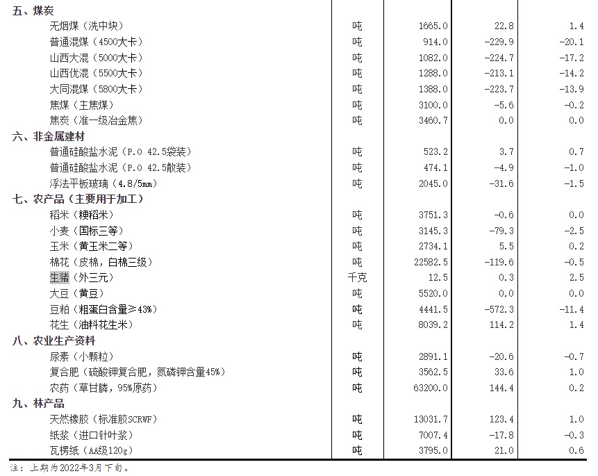 智通财经APP获悉,据国家统计局4月14日消息,数据显示,据对全国流通领域9大类50种重要生产资料市场价格的监测显示,2022年4月上旬与3月下旬相比,25种产品价格上涨,21种下降,4种持平。其中,生猪(外三元)价格为12.5/千克,环比上涨2.5%。