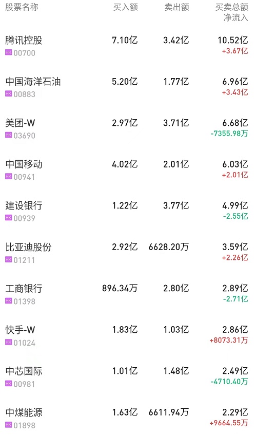 港股通(深)十大活跃成交股