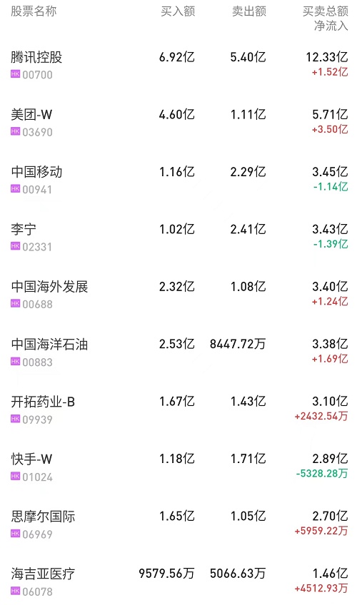 此外,中国海外发展(00688)、中国移动(00941)分别获净买入1.23亿、8711万港元。而李宁(02331)、中芯国际(00981)分别遭净卖出1.38亿、4710万港元。