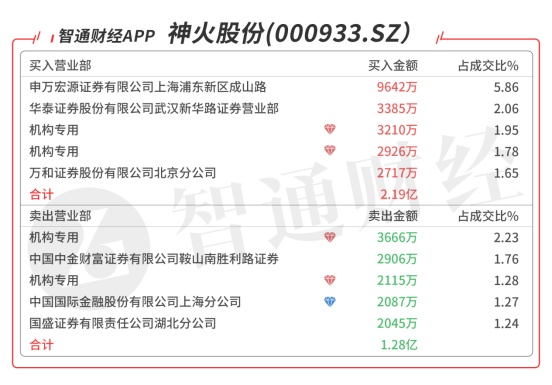 神火股份(000933.SZ):受到众多机构青睐,今日共4个机构席位出现在龙虎榜单上,分别位列买三、买四、卖一、卖三,合计净买入355万元,当日净买入1.02亿元,该股今日突破近期平台强势涨停,预计有溢价。