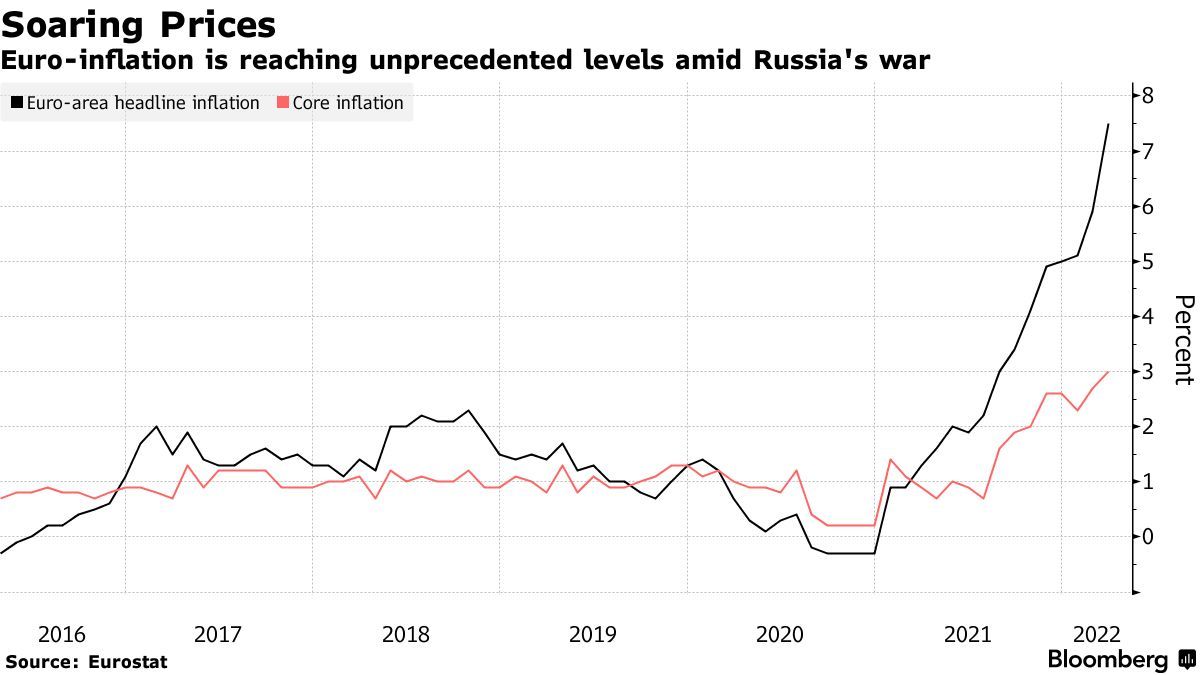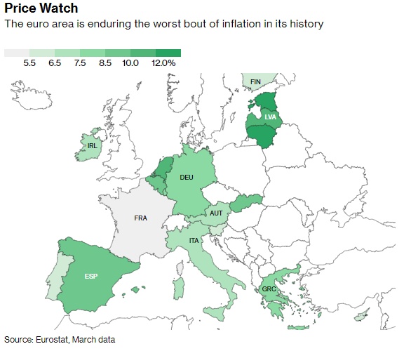在俄乌冲突期间,欧元通胀达到了前所未有的水平