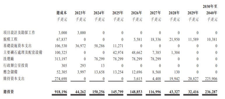 公司于Kokbulak铁矿石项目中部地区运营的预期矿产年期的资本开支约为9.182亿美元。