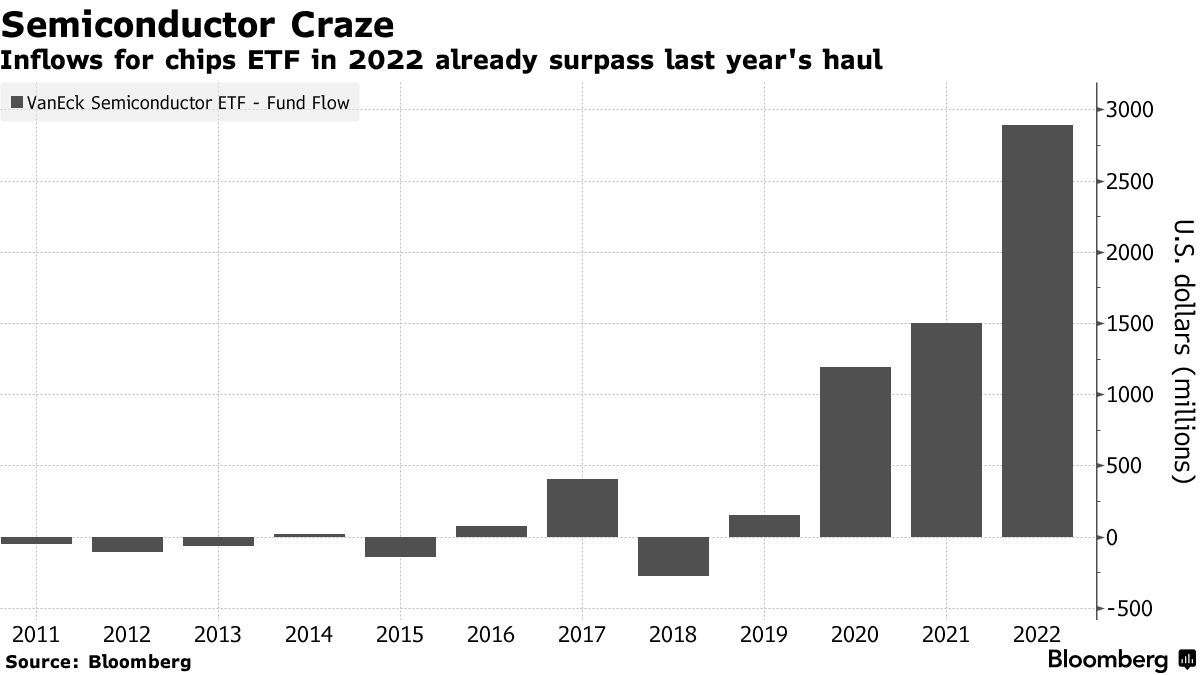 2022年仅4个月流入芯片ETF的资金已经超过了去年