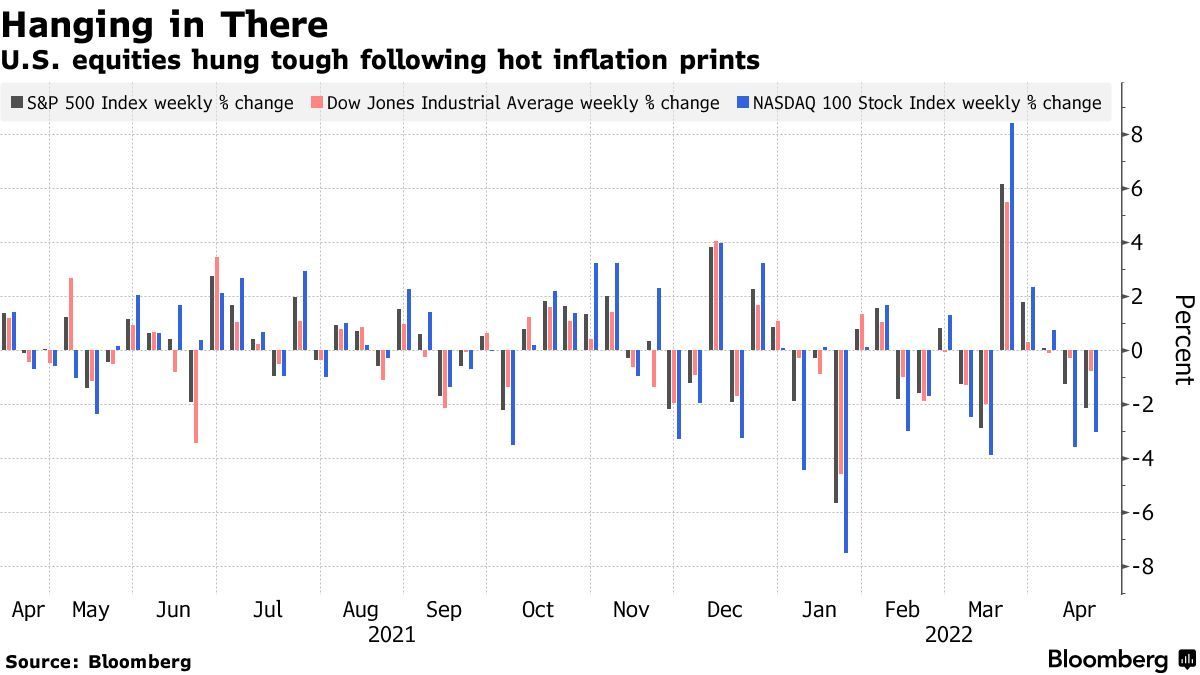 智通财经APP了解到,尽管本周出炉的美国通胀数据达到40年来最高水平,但美股也有明显的反弹迹象,其中包括本周三的反弹,反弹趋势推动标普500指数创下上月以来的最大涨幅,而这一涨幅出现在美国CPI及PPI高于预期的背景之下,足以见得“逢低买入”力量仍然庞大。2年期美债收益率在本周的四个交易日中有三个交易日处于下滑态势,工业类股票的价格仍然坚挺,波动率基准指标仍无显著变化。