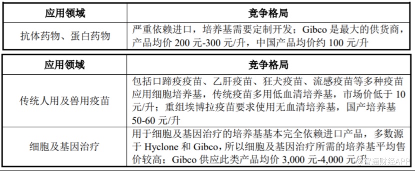 据智通财经APP了解,抗体和蛋白药物的细胞培养基,进口产品一般在200-300元/升,国产产品一般在100元/升左右。细胞和基因治疗的培养基几乎完全依赖进口,售价一般在3000-4000元/升。